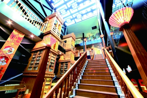 如今的宫原眼科保留了旧时的红砖墙、旧牌楼,室内设计充满时尚味道,乍一看,你会以为自己走进了一个偌大的图书馆。店内,高10多米的书架由地下延伸至天花板,气势非凡。其实书架上并不是真的书本,而是各种蛋糕、饼干,用日式怀旧的盒子盛着,精美到爆,整个氛围像极了《哈利·波特》里霍格沃兹的图书馆。这里出产的宫原冰淇淋和巧克力远近闻名,太阳饼、凤梨酥采用当地的优良食材。另外,这里的冰淇淋吃法很有创意,把店内知名的瓦片、软糖、凤梨酥、荷兰煎饼等跟冰淇淋放在一起,令很多食客甘愿排队苦苦等候。