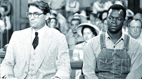 在影视剧等衍生作品渲染下,芬奇律师(左)等角色成了一代美国人的偶像(图为《杀死一只知更鸟》1962年版电影剧照)。