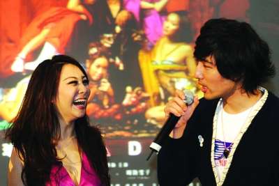 在片中扮演阴阳人的女主角雷凯欣两手各抓一只筷子,满脸妖媚的微笑,亲昵地给男主角叶山豪喂东西吃。记者疯狂抓拍这一难得场景。