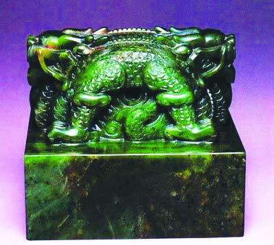 据伦敦媒体称,一块嘉庆皇帝的翡翠双面御玺将于5月12日在伦敦邦翰斯的中国精品艺术拍卖中被拍,估价4万至6万英镑。这块玉玺丢失于1860年的第二次英国侵华鸦片战争,随后被利物浦的医学传教士威廉·洛克哈特带到了英国。与玉玺一同出售的还有威廉·洛克哈特的扇子,扇子的一面印有中国地图,另一面印有北京地图,洛克哈特将其在北京工作的医院以“X”标注在地图中。