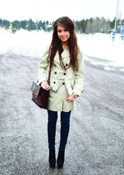 ↙裸色Celine笑脸包搭配卡其色外套 |