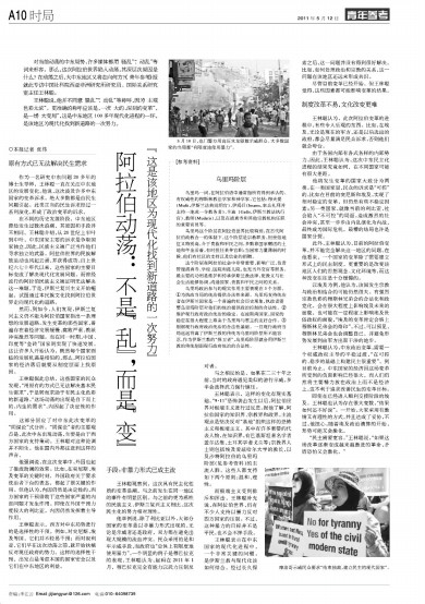 这部分回应了对中东此次变革的“阴谋论”式分析。“阴谋论”者的主要观点是,此次中东出现动荡,主要是由于西方国家的支持策动。王林聪对这种论调并不陌生,他在国内外都注意到这样的声音。