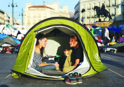 西班牙今年第一季的失业率高达21.3%,为欧盟国家中最高;当地18岁至25岁的青年失业率更是高达45%。而在本次选举中,首次有资格参与投票的西班牙青年大约有80万人。在选举开始之前,西班牙国内即展开了大规模的群众性抗议活动。人们认为社会党的统治导致了数百万个就业机会消失,而财政紧缩政策更令他们痛苦。西班牙首都马德里的太阳门广场更成为这次抗议浪潮的中心,很多示威者甚至选择在广场露营,以表达对执政的社会党的愤怒。