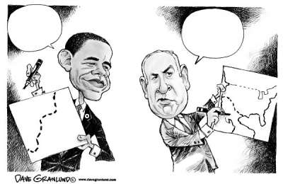 美国总统奥巴马19日呼吁以色列和巴勒斯坦以1967年“六日战争”前边界线为基础展开谈判。20日,他与以色列总理内塔尼亚胡在白宫会谈,气氛挺尴尬。会谈后,两人举行记者会,内塔尼亚胡拒绝1967年前边界的提议。内塔尼亚胡直视奥巴马说道:“我与奥巴马总统都同意,建立在幻想上的和平,会在中东实际情况这个岩石上撞个粉碎……以色列准备为和平作出大妥协,但不可能依据1967年的边界,因为这会让以色列无险可守。”奥巴马记者会上未提1967年边界,表示“朋友间”会努力消除歧见。目前约有50万以色列人住在约旦河西岸的犹太人定居点,这些定居点都在1967年前的以色列国土外。