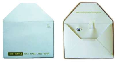 这个外表看似普通的纸质小信封内部,藏有一枚科技小配件,可以帮您将录制好的语音信息通过邮局寄送出去。为了防止收件人被话痨骚扰,同时也是为了节约成本,这个小玩意儿只能录制10秒的语音信息,在发送邮件之前,可得好好斟酌用句呀!