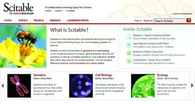 你对生物学感兴趣,想成为科学家?那你应该上Scitable网站看一看,这是自然出版集团旗下的一个免费在线科学图书馆和个人学习网站。Scitable目前主要为网友提供遗传学和细胞生物学领域的书籍和信息。