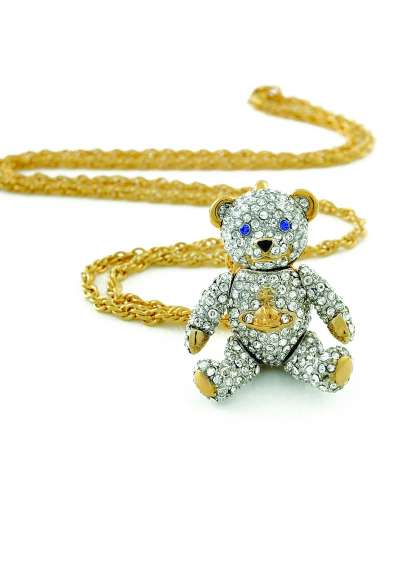 英国著名的非主流品牌Vivienne Westwood一向走“庞克风”,其创始人Vivienne Westwood女士有“庞克教母”之称,她非常善于把叛逆的元素融入到设计中。奇特的剪裁、浓重的色彩都是Vivienne Westwood的特色。在这个牌子的饰品中,却出现了一个憨态可掬的泰迪熊,没错,这个泰迪熊也是Vivienne Westwood的热卖品,不仅被做成手机链、钥匙扣,还有镶满水钻的泰迪熊项链。而这一时尚单品也经久不衰,每一季Vivienne Westwood还会推出不同材质的泰迪熊挂件,搭配其经典保龄球包出售。走在英国大街上,带有浓重英伦风的时尚潮人从裤兜里掏出手机的那一瞬间,泰迪熊会暴露他们内心的童真。