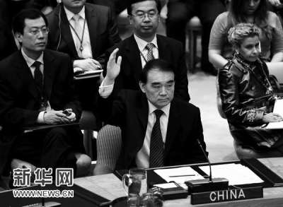 10月4日晚上,中国在联合国安理会投票现场动用了否决权。在公开辩论之后,谴责叙利亚的决议草案交付投票,15个安理会成员国中只有中国和俄国投了否决票,阻止了草案通过。