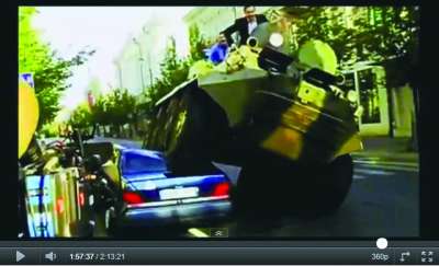 和平奖被授予立陶宛维尔纽斯市的市长阿图拉斯·佐卡斯,以奖励他成功解决了豪华轿车乱停乱放的问题。他向我们演示了他的成功之道:驾驶一辆装甲坦克,碾过去吧。