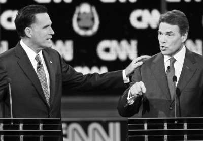 当地时间18日晚,共和党总统参选人第8次辩论会在内华达州的拉斯韦加斯举行。辩论赛最终发展成前马萨诸塞州州长米特·罗姆尼和得克萨斯州州长里克·佩里间的互相攻讦。