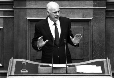 面对集聚在希腊议会外面的抗议者,总理帕潘德里欧一方面希望民众能亲身感受到政府承受的压力,另一方面希望利用公投分担政府责任,于是,他选择将是否接受援助方案的决定权交到民众手中,并期望从中获得更多的政治支持。
