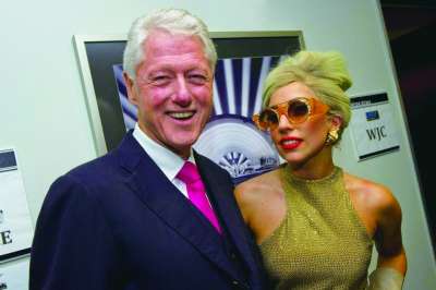 在今年的克林顿生日聚会上,美国著名歌星Lady Gaga专门改编了自己的名曲《Bad Romance》为《Bill Romance》为他祝寿。她模仿起当年梦露的性感造型,走向克林顿一家,在距离他们不到一米的地方,对着前总统深情款款地高唱:“我爱你,比尔!”当这一家人惊讶地盯着这个只穿着肉色服装的另类歌手时,她继续转向克林顿的女儿唱道:“也爱你,切尔西!”