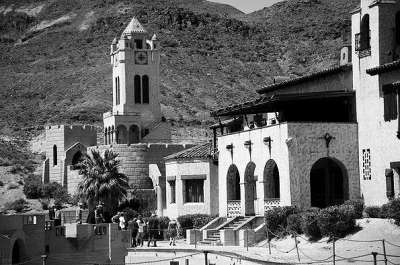 上世纪20年代,一对姓约翰逊的夫妇鬼使神差地看中了这块不毛之地。约翰逊先生是来自芝加哥的保险代理人,按照一位神秘朋友的建议,他和妻子决定在死亡谷北端建一所地中海式的豪宅,附带马棚、钟楼和一个靠温泉提供热力的发电站。从某种意义上讲,斯科蒂城堡本身也是座遗迹,因为宏大的工程到最后也没能全部落成。尽管如此,已经竣工的部分依然可观,不仅包括装修极尽奢华的主建筑,甚至还有几排好莱坞式的棕榈树。