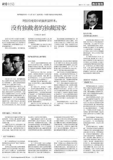 今年,当民众掀起抗议浪潮,阿萨德政权大肆镇压反对者,以致联合国秘书长潘基文骂他“失去一切人性”。但阿萨德似乎并没有退让,反而在11月19日告诉英国《星期日泰晤士报》,若面临外来力量介入,他绝对已准备好为叙利亚“奋战至死”。19日正是阿盟要求叙利亚停止镇压的期限,阿萨德则指责阿盟给西方未来军事介入叙利亚提供了的口实。