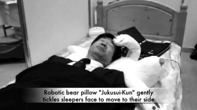 表面看来,这头机器熊与普通玩具熊并无区别,但实际上,它却是一个内置了麦克风和芯片的枕头。机器熊会通过麦克风收集打鼾者发出的鼾声,如果鼾声过高,吵到了机器熊,它就会“很不耐烦”地伸出厚厚的熊掌,帮打鼾者翻个身。当然,这一动作会很轻,不至于把人吵醒。