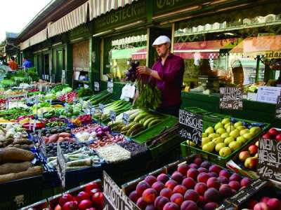 要想在维也纳大举采购,再没有哪儿比纳什市场更合适了,大量的露天货摊保证你想买什么就能买到什么:新鲜的鱼和香肠、热乎乎的面包、冷鲜肉、干酪、刚榨好的果汁……水果和蔬菜更是琳琅满目。土耳其来的移民把羔羊肉切成薄片卖给食客,年青人聚在一起痛饮啤酒,啜食牡蛎。这才是维也纳实实在在的市民生活。女摊主丹妮拉告诉我:“附近的很多百姓喜欢来此闲逛,它非常具有地方特色,也是个聚会的好场所。”