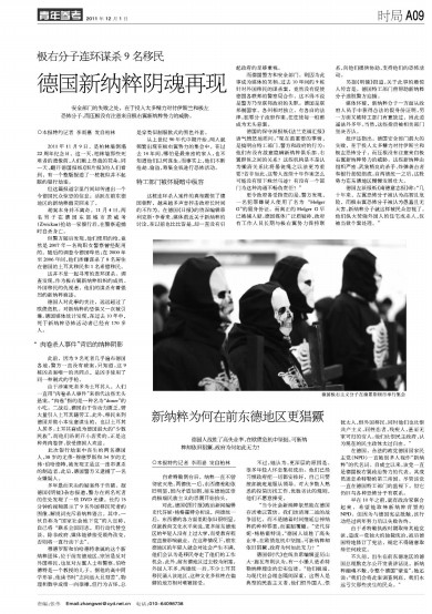 但这篇报道字里行间却传递出一个令德国民众惊恐的信息:活跃在前东德地区的新纳粹幽灵回来了。