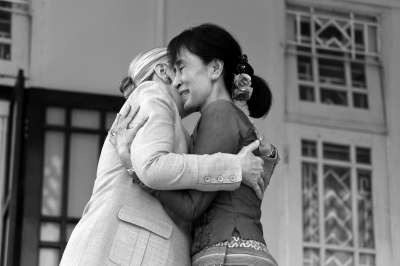 一个是美国国务卿,位高权重;一个是缅甸民主运动领袖,声名显赫。希拉里2日抵达仰光,造访昂山素季的寓所,两人相见甚欢,惺惺相惜,临别时情不自禁地相拥。希拉里2日宣布,向缅甸民间社会提供120万美元的资金援助。