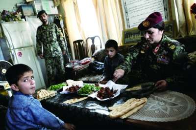 参军后不久,她参加了150公里拉练,和几乎清一色的男性新兵一起,从首都喀布尔翻越高山,到达东部城市贾拉拉巴德。拉练过程中,她和男兵们一起风餐露宿。到达目的地后,她的双脚被磨得鲜血淋漓。“我们遭了不少罪,但还是出色地完成了拉练。”她说。