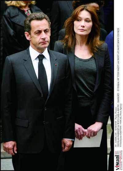 自从嫁给萨科齐之后,布吕尼经常被称为“萨科齐的夫人”,但在2008年出席设计大师伊夫·圣·洛朗的葬礼时,萨科齐恐怕要被称为“布吕尼的丈夫”了。在布吕尼的模特生涯中,伊夫·圣·洛朗可谓是令她大放光彩的品牌,她与伊夫·圣·洛朗本人有很深的交情,在葬礼上,她穿着伊夫·圣·洛朗标志性的黑色套装,以示对设计大师的尊重。
