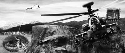 未来战争中的某一天,你驾驶的“阿帕奇”武装直升机停在一片林间空地上隐蔽待命。而在几英里外,一架无人驾驶侦察机已盯住了山梁那边的一个敌军通信站,它“看到”的一切,都通过机舱内的多功能显示器呈现在你面前。与上级协调后,你决定收拾掉这个通信站,于是操纵“阿帕奇”急速上升,射出一枚“海尔法”导弹后,重新下降把自己隐蔽起来。几秒钟后,前方的无人机传来捷报:目标已被摧毁,敌军始终未能掌握你的行踪。