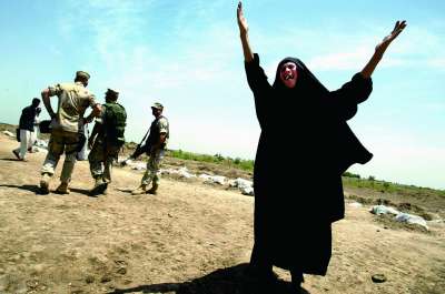 2003年5月14日,伊拉克希拉市的一位母亲哭喊着失踪儿子的名字。萨达姆政权垮台后,当地挖掘出2000多具尸体。 |