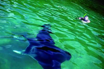 不需要划到大海深处,这浅海湾的风光足以令人流连忘返了。雨水般澄净的海水大概有12英寸深,海底风光一览无遗:海床上铺着厚厚的海草,胖嘟嘟的海胆就像沙发枕头,海龟在它的“客厅”里过着滋润的小日子。天哪,我竟然还发现了不止一条鲨鱼,好在它们都是“迷你”型,我暂且不用考虑自己的安危。