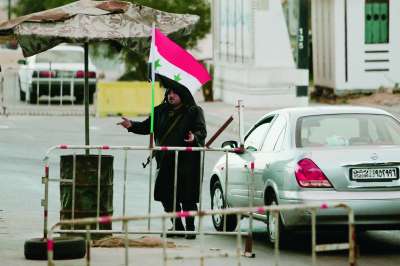 大马士革街头背着枪的军警 |