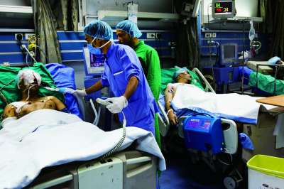 大马士革公立医院收治的爆炸伤员,这家医院停尸间里被炸死的人惨不忍睹。 |
