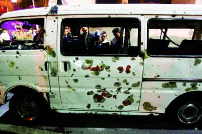 受到波及的过路车辆,车里满是鲜血。 |