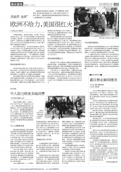 圣诞折扣季对欧美人来说是一年中最期待的“血拼”季节,或许因为经济衰退,2011年的“血拼”比往年少了些许“疯狂”。深陷债务危机的欧洲国家在折扣季难以发力,美国却保持了红火的势头。