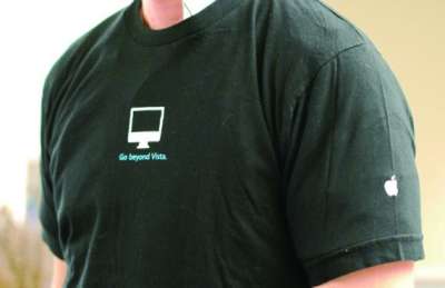 店员T恤的演变反映了苹果品牌的演变历程。多年来,“超越Vista……该来台Mac电脑了”和“对PC机用户来说这不是礼物,是干预”等挖苦微软公司的T恤标语已经退出历史舞台,取而代之的是2007年iPhone发布大会上“向iPhone问好”这样更简单的内容。