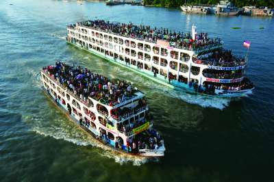 2011年8月29日,孟加拉国达卡的穆斯林搭乘渡轮回家过开斋节。 |