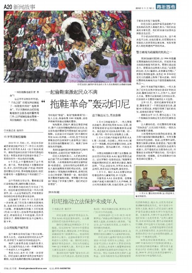 这起案件于2011年12月进行第一次审理,成了印尼各大媒体的新闻头条,也成为社交网站上许多人关注的热门话题。涉案拖鞋仅价值3万印尼盾(约合3.3美元),但如果男孩偷窃罪名成立,将面临长达5年的监禁,而许多恐怖分子、毒贩和强奸犯也不过被判入狱5年。