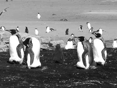 正闲谈间,成群的企鹅突然从海中冒出头来,如登陆艇般争相冲上海滩。我好奇心大起,赶忙加入到它们的行列中去。这些家伙的纪律性可真强:一边的长队里全是绅士企鹅,另一边全是麦哲伦企鹅,丝毫不乱。再听听它们抑扬顿挫的鸣声交织回荡,谁说动物没有组织观念?