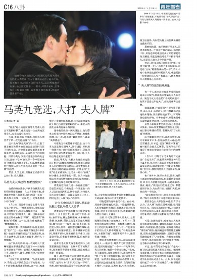 不过,直到2012年竞选,他的夫人周美青才第一次为他拍摄了广告片。
