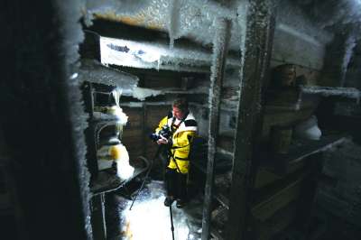1月16日,澳大利亚南极事务部主管佛莱明在“莫森小屋”里拍照。 |