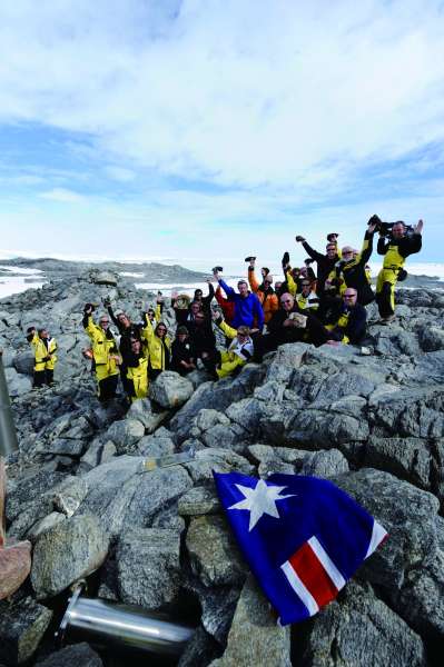 破冰船成员摆好了pose和国旗(摄于1月16日)。 |