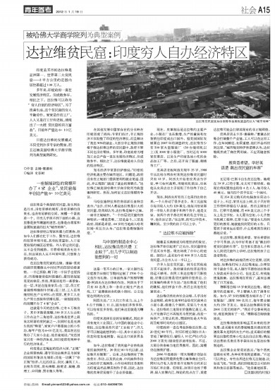 目前达拉维的发展模式不仅受到许多专家的赞誉,而且还被美国哈佛大学商学院列为典型案例研究。