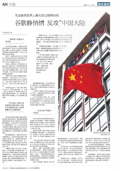 《华尔街日报》借咨询公司BDA China Ltd董事长杜肯·克拉克的话指出,人们往往认为谷歌退出了中国,但中国大陆市场并没有远离谷歌。