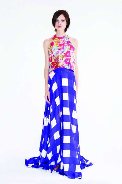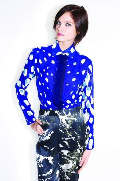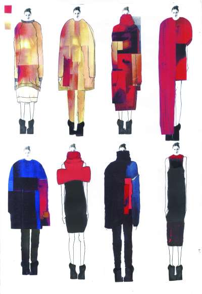 Ruth Green毕业于英国皇家艺术学院,在毕业设计中,这位“新手”捕捉到了本季的流行元素——椭圆、橘色。他没有将椭圆局限在衣服的图案上,而是将整件外套的肩部做成了椭圆形,并用色块拼接在外套上演绎了橘色系的温暖。显然,这位高明的毕业生设计师在流行趋势的轨道上走出了自己的路。