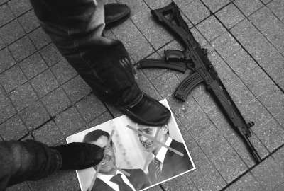 当天,在为一名死难者进行的葬礼上,脸部蒙着的“叙利亚自由军”士兵,手持突击步枪和榴弹发射器为葬礼“保驾护航”。有数千人跟在棺材后面进行游行,棺材上面盖的是绿色、白色和黑色组成的旗帜,这显然不是叙利亚政府的旗帜(编者注:叙国旗由红、白、黑三个平行长方形组成,中间有两颗绿色五角星)。数月来的镇压,使民众开始欢迎这些战士打击阿萨德的安全部队。一名37岁的支持者称,“我们不知道他们的指挥官是谁,但我们知道他们是保护我们的。”