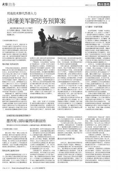 尽管本次裁军号称精兵简政,技术密集型的美国海军和空军受到的波及并不显著。从某种意义上讲,五角大楼其实是在用高技术替代昂贵的人力。尽管帕内塔在讲话中没有正面提及中国,一些亚洲国家的舆论还是相信,随着新国防预算案的逐步落实,美军针对中国的“海空一体战”将进一步趋于明晰,并获得更大的预算空间以便展开操作。