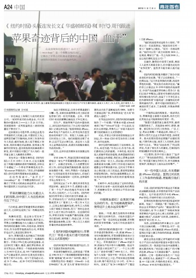 目前,《纽约时报》等外媒还在不断就此话题跟进报道,许多使用着苹果产品的中国人,也开始意识到手中的iPhone、iPad背后,中国和中国人付出的代价。