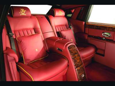汽车品牌劳斯莱斯在龙年推出全球仅一辆的幻影龙年版车型,车身两侧涂有金色的中国龙图案。内饰也与外观相呼应,用金线在头枕上缝制了龙图案,面板上也有金龙图案。该车采用黄金嵌入物、豪华的真皮材料以及手工打造的细节设计,十分奢华。