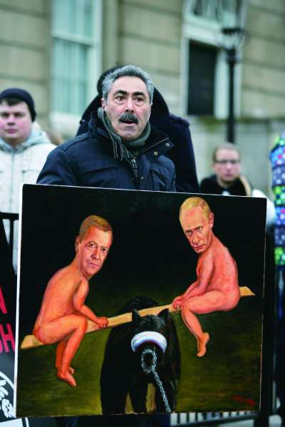 旅外的俄罗斯人举行反普京集会,要求公平选举(摄于英国伦敦)。 |