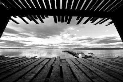 深入巴塔哥尼亚的旅途当然算不得轻松,我们首先飞抵智利中部的特姆科,而后驱车驶上高速公路,时而潜入荆棘丛生的谷底,时而翻越奇峰突起的山峦。颠簸了3个多钟头,山路终于绕过最后一座丘陵,消失在被狂风鞭打得烦躁不安的“最后希望”湾身畔。猛烈的风似乎要把汽车吹进峡谷,丈夫见状不敢停留,径直开进了一座光线暗淡的仓库。