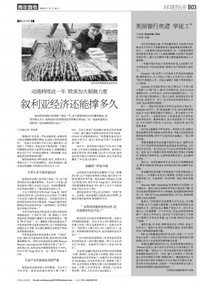大马士革的经济学家Jihad Yazigi是《叙利亚报告》的作者,这份报告出自总部位于巴黎的中东信息与通讯局(MEICA)。该局是目前发布叙利亚经济信息的主要来源。Yazigi在接受国际新闻社的电话采访时说:“(叙利亚的)经济情况是非常难以评估的。”
