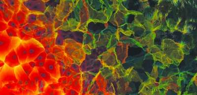 这幅绿色TRA-8药物分子大战乳癌腺细胞的插图,为来自美国的艾米克·保罗赢得了插图类荣誉奖。乳腺癌细胞在这里看起来十分科幻,像是长有触须的外星生物。而TRA-8药物在锁定癌细胞的同时,对健康细胞没有危害。