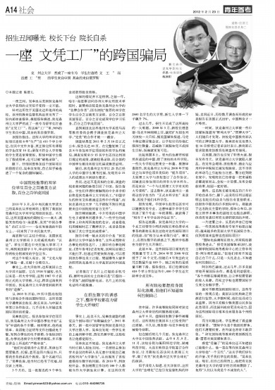 该报告指出,这所大学的双学位国际项目连续8年“生产”出410个学士学位,但其中文件齐备、真正修完所有课程的学生仅有10名;录取不符合入学资格的学生更是家常便饭,即使中国学生提交了假成绩单,也可以被“破格录取”。